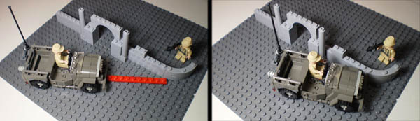 Since the vehicles have a big "move ability" and are several studs wide, it becomes tedious to count the studs on the battlefield to move them. Instead you can use a ruler made of bricks of the corresponding length to measure the move distance (there are many ways to build a ruler with LEGO® bricks, see the