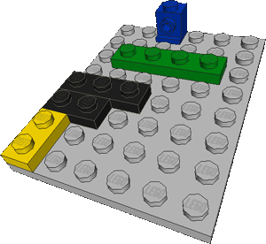 To keep a track of the speed of the vehicle, we put a MB on the corresponding green stud (read the studs from left to right and from top to bottom as if reading a book). Or you can put as many MB as the speed directly on the vehicle if the Description Sheet is shared by several identical vehicles. Of course if the speed falls to zero then we simply remove the MB. Some vehicles like planes must have a minimum speed. In that case the first green studs on the Description Sheet will be replaced by green tile bricks. Since you cannot stack a MB on a tile, it means the vehicle cannot move at these slow speeds. For such a vehicle, you just need to increase the speed above the minimum one to take off; and if you decrease the speed to 0 that means you make it land. |