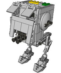 ![]() You can use an official set of the AT-ST (for example the set #7657), or you can build your own. Beside there's also the building instruction of my simplified version (notice that I put 3 yellow studs and 2 green studs on it to mark the HP and current speed, and the MB of the occupant can be stack on the front bar). If you choose to build your own AT-ST, your model should be able to carry 2 minifigs, and the cockpit must be able to turn up to 90° on left and right. | ||||||