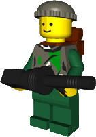 The battle will take place on 6 baseplates 32x32, i.e. the size of the battle field is 96x64 studs. Most of the battlefield is covered by big trees whose trunks are represented by 4x4 round bricks. On one side there is the bunker. Below you will find the building instruction for this bunker, but of course you can build your own. This bunker should have two sliding doors with control panels inside and outside, and 3 places to put the bombs.